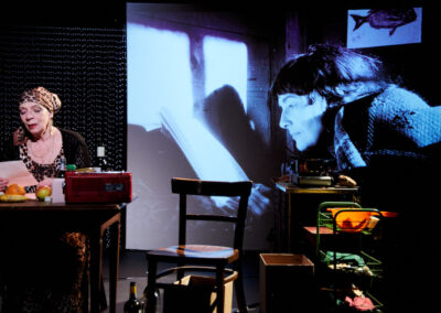 Françoise Courvoisier, qui a créé la première adaptation théâtrale de l’œuvre de Grisélidis Réal au Théâtre du Grütli en 1993, est devenue proche au fil de nombreuses collaborations de cette artiste hors du commun ; peintre, écrivaine et catin révolutionnaire. Avec 46 rue de Berne, qui puise dans les deux livres de correspondance avec Jean-Luc Hennig, elle lui rend un nouvel hommage qui est peut-être le plus abouti, dans le sens où il met plus que jamais en lumière la qualité et la rareté de son écriture.