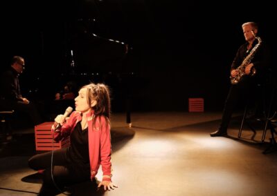 Ce désir de mouvement, d’improvisation : (« Ne pas se relire, Messieurs les écrivains ! » dit-il aussi dans un autre poème) donne tout son sens à cette association d’une comédienne avec deux musiciens de jazz, férus d’improvisations.