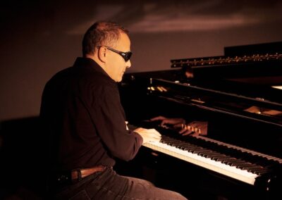 Suite à un concert mémorable du pianiste Moncef Genoud et du saxophoniste Valentin Conus – ces deux grands musiciens de jazz avaient plongé les spectateurs des Amis dans l’extase – est née l’idée de mêler aux musiques sensuelles composées par Moncef ou empruntées à d’autres les poèmes d’Henri Michaux. Une performance n’excluant pas l’improvisation dont les deux jazzmen sont férus, d’autant plus que les textes du poète ouvrent tout grand les portes de l’imaginaire.