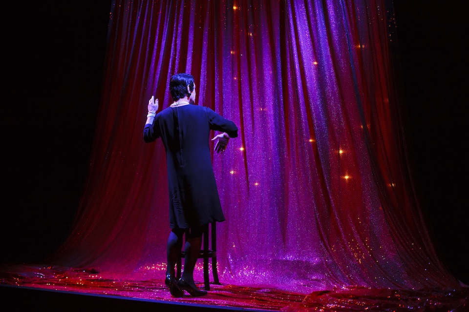Depuis longtemps Jacques Michel rêvait de reprendre pour ses quatre-vingts ans Music-hall de Jean-Luc Lagarce. Le récent décès de sa compagne Véronique Ros de la Grange, qui l’avait mis en scène lors de la création en 2013 au Théâtre de Poche alors dirigé par Françoise Courvoisier, a fait de ce projet de re-création une évidence. Caroline Gasser y jouera le rôle de la souffleuse, comme si l’âme de la compagne absente passait dans le théâtre. Devant un grand rideau rouge à paillettes, Jacques Michel incarne « La Fille », une star du music-hall sur le déclin, qui soliloque, assise sur son tabouret. Elle raconte les souvenirs de sa gloire passée, de ses échecs aussi. Et elle chante (en play-back) Joséphine Baker : « Ne laisse pas mourir nos rêves, de temps en temps rappelle toi » C’est une spirale de réminiscences, un dernier chant avant le naufrage final. « Une plongée intérieure qui ramène à la surface le reste de vivant, pour échapper à l’oubli, au silence, à la mort » nous dit Jacques Michel, comédien charismatique, dernièrement éblouissant au Théâtre de Carouge dans le rôle du Capitaine Haddock.