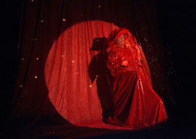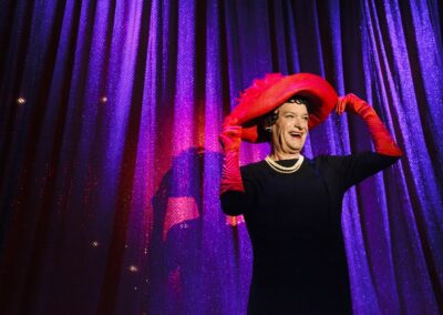 L’interprétation d’un rôle féminin par un homme ne fait pas verser le spectacle dans le ridicule mais le rend au contraire troublant et fascinant, car c’est en se décalant du réel que celui-ci peut nous apparaître encore plus… C’est en somme la fonction du théâtre.